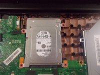 • Lift the hard drive up and pull it towards the screen so that it disconnects from the motherboard.