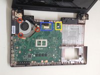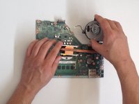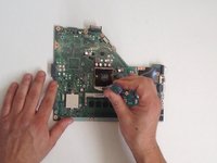 There is another one cable, from the DC connector, connected to the underside of main board. We should spun the the board to disconnect the DC connector cable.
