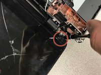 Once the sticker is peeled off pull the plug holding the webcam into the circuit board and the webcam is now disconnected.