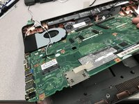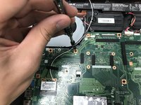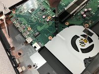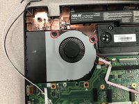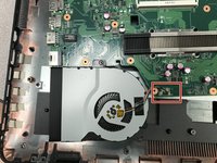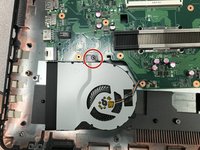 Remove the Phillips #00 screw that holds the fan to the motherboard.