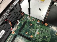 Remove the one screw on the right side of the motherboard that keeps the cd tray in place.