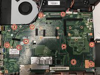 Unscrew the 11 screws that hold the motherboard to the base of the computer with a 00 Phillips screwdriver.