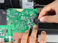 Lift the motherboard just enough to dismount it from the plastic pegs that hold it in place.
