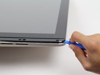 Move the tool along the entire edge of the screen with an up-and-down prying motion to loosen the screen from the casing. Do not lift the entire screen away from the computer yet.