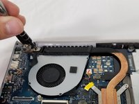Remove the 2mm Phillips #00 screw from the plastic housing securing the fan into place.