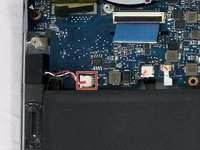 Pull the speaker connector toward the edge of the laptop to disconnect it from its socket.