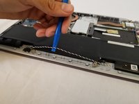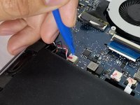 Disconnect the display cable from the motherboard with a plastic opening tool.