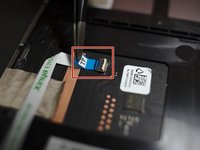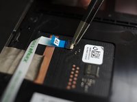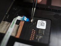 Use the tweezers to unlatch the clasp holding the ribbon cable