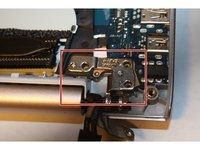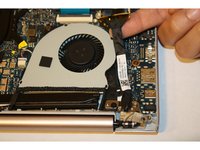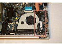 Pull on the black flap to lift the LVDS cable next to the cooling fan.