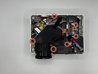 Remove all six of the 11 mm screws on the base of the projector using a Phillips #1 screwdriver.