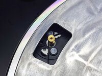 Rotate the metal plate until the rectangular opening near its edge lines up with the gold knob in the top-left corner.