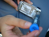 Unscrew all five screws on the back of the cell phone with a Phillips #00 screwdriver.