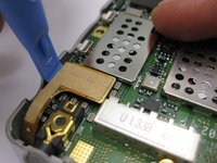 Using a spudger, lift the motherboard out of the phone case as pictured.
