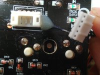 The backside of the PCB and the controller board can be seen. The USB-cable is attached via a connector, use a flat screwdriver to carefully push it out (don't pull on the cable since that might break it).