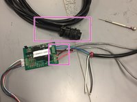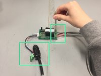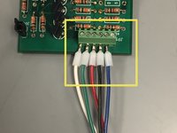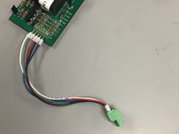 Attach the blue, green, and brown wires from the 6-pin connector to the board. These wires have been fed through the box previously and are heat shrink wrapped.