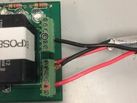 Screw the red power wire into the terminal 1 up from the bottom of the bottom connector.