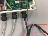 Cut the black casing down as done earlier to expose the wires for testing until the wires can reach through the entire node box.