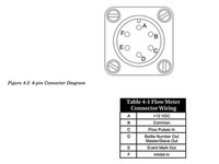 The wire colors as determined by this test for this wire configuration are as follows: blue = bottle number, green = pulses to autosampler, brown = event mark, black = power, white = ground, red = inhibit.