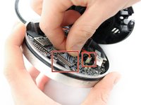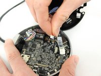 Disconnect the two cables from the camera base motherboard by gently but firmly pulling directly away from their respective ports.