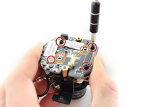 Use a PH000 screwdriver to unscrew the two 3mm screws that hold the motherboard to the camera. These are smaller screws that have no washers and are not raised.