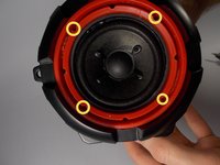 Separate the red plate from the black face plate by removing the black plate from the tube and pushing on the inside of the subwoofer.