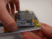 Use the plastic opening tool to pry the white back from the silver frame. Start near the micro SD slot.