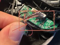 Once I had disconnected and reconnected all the wiring, I noticed that one of the cables is made up of bare stranded wire (red circle).