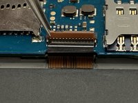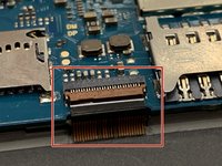 Remove the white ZIF connector then remove the cable connecting the digitizer to the motherboard by gently pulling.