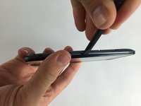 Carefully use a spudger to start opening the back case by inserting it between the black and blue lines on the side of the phone.