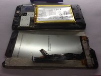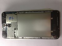 After the damaged LCD screen were removed, install the new LCD screen, remember the flex and connector need to go thought the small opening below the battery. Connecting back both connectors, and secure the metal bracket on top of the battery.