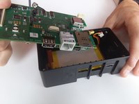 Slowly lift the motherboard out from the device by lifting it from the end next to the ribbon connection.