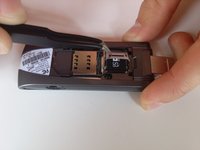 Using your tweezers, gently push on the metal plate and slide it down toward the base of the modem to release the locking mechanism.