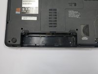Push the latch on the right to the right to unlock the battery latch locking mechanism.
