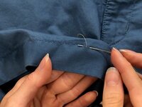 This guide demonstrates how to complete a hand sewn backstitch to repair a loose hem on a pair of woven cotton shorts. This technique is incredibly versatile and can be used on most seams, hems, and patches.