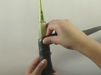 At the top of the handle, wrap the grip with the strip provided in the over grip package.