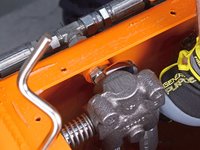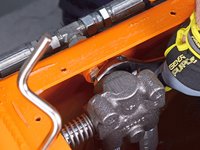 Rotate the actuator valve so the return tube and relief valve are horizontal and parallel to the tank opening, facing the engine.