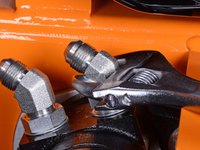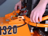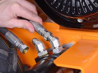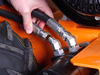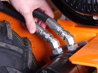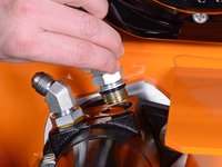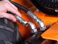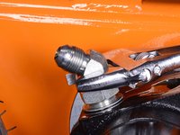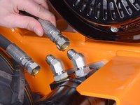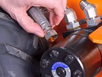 Use an adjustable wrench to loosen the nut locking the upper hose fitting to the wheel motor.