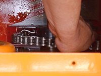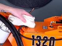 Place an oil drain pan underneath the wheel drive motor to catch hydraulic fluid that will spill out during this procedure.