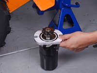 Lift the tank lid out and around the engine guard mounting tabs to remove it.