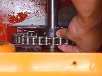 Reaching in from the top of the tank, lift the drive chain up and off of the axle gear.
