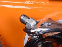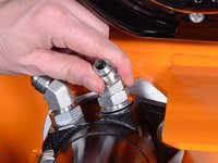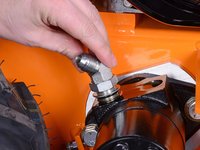 Use an adjustable wrench to loosen the nut securing the lower fluid hose to the fitting on the wheel motor.