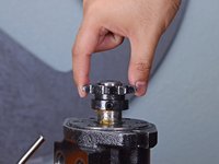 Use a 3/8 inch socket to remove the ten bolts securing the tank lid.