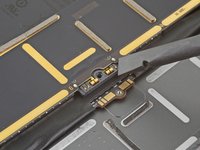Use a Phillips screwdriver to remove the three 1.2 mm screws securing the bottom cable shield to the logic board.