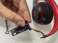Use a soldering iron to desolder the seven wires attached to the audio jack board from the the left ear cup.