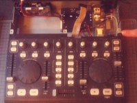 The jog wheels on the front panel can be taken off by using a spudger and levering them out.