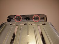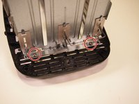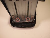 Using the Phillips #1 screwdriver, remove the two 8.0 mm screws from the backside of the toaster.