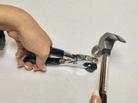 • Placing the loop of leather in between the pliers, center the eyelet on the indent previously made and press down firmly.