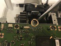 Remove the two Philips #2 (PH2) screws that hold down the black blower fan, located at top center of the circuit board.