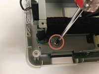 Loosen the 2.5 mm Phillips #1 screw that holds the top assembly in place using a Philips #1 (PH1) screwdriver. This will enable you to lift and slide off the top cover.