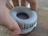 Solid plastic rings are glued inside the old earpads. That's the part that clips on the headphones so we need to pull them out and get them.